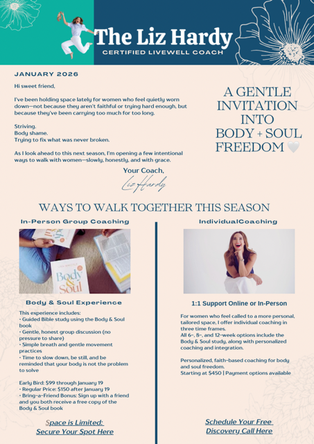 Not Local? I am offering this to my 1-on-1 clients on Zoom! Schedule a Discovery Call on my website www.TheLizHardy.com