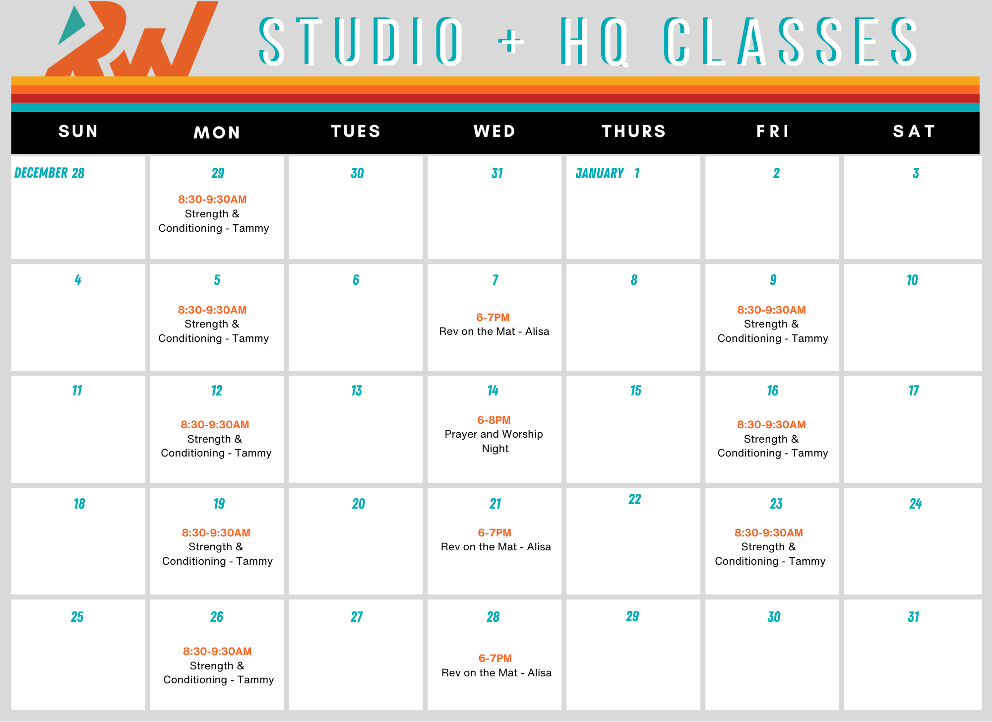 Each class at Revelation Wellness Studio + HQ combines intentional movement with the truth of the Gospel, offering you a workout that strengthens both your body and spirit. Expect encouragement, hope, and a whole lot of freedom as you move with us! Enjoy your first week free on us. Show us your screenshot when you arrive, and get ready to move in FREEDOM!