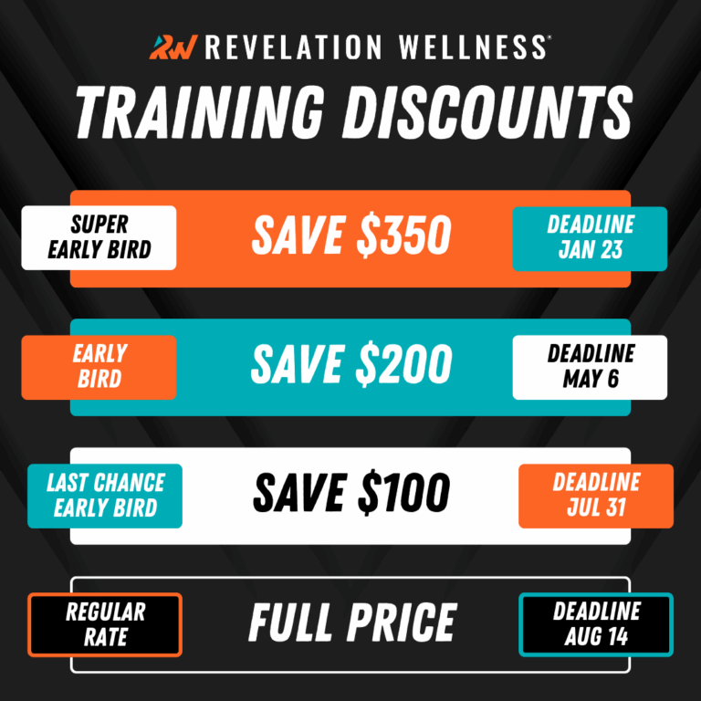 Here, you will find information about instructor store discounts, exclusive instructor tools and supplies, and other training discounts you can access as a Revelation Wellness family member.